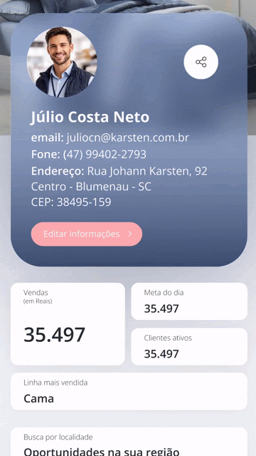 A Karsten (marca tradicional com atuação sólida no mercado têxtil) identificou que sua equipe de vendas carecia de uma plataforma B2B que unisse catálogo de produtos, histórico de clientes, fluxo de pedido simples e indicadores relevantes — tudo em um único lugar para facilitar as vendas do dia a dia.