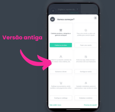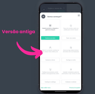 Versão A (Antiga): onboarding anterior, sem direcionamento progressivo;