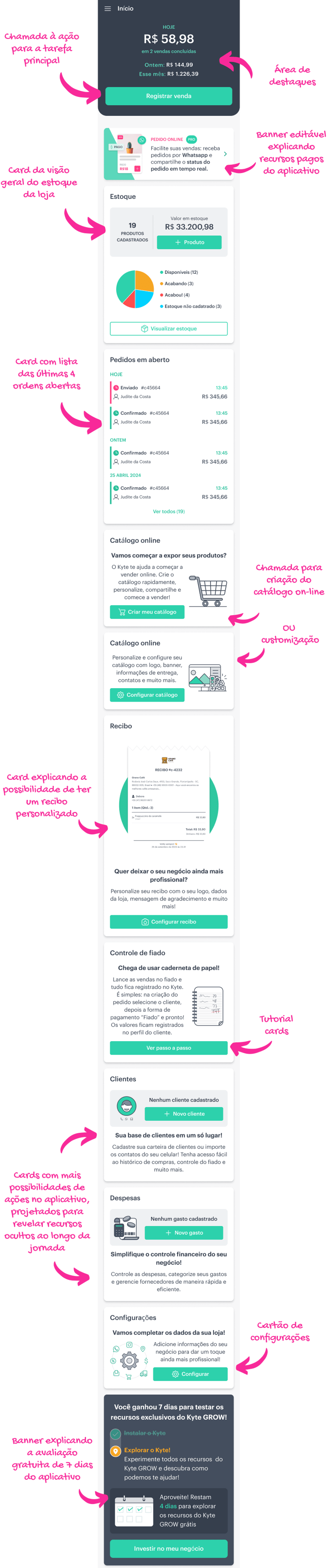O Kyte é uma solução de gestão e vendas voltada para pequenos e médios empreendedores, que precisam de agilidade e simplicidade para vender e organizar o negócio pelo celular.